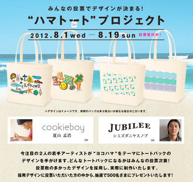 トートバッグを2案デザインをさせて頂きました! もう1人は大活躍中のcookieboyくん! 本日8/1から投票スタートです! 皆さん、是非投票して下さい☆