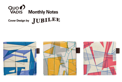 2015年版、クオバディスから新たに登場した正方形サイズのマンスリーダイアリーと、コンパクトに持ち運べる人気の 薄型マンスリーダイアリーにブランドJUBILEEによるデザインのカバーを合わせました。