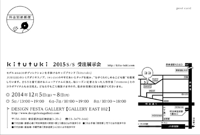 「kitutuki」 2015 S/S collection、受注展示会を開催します◎