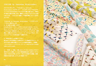 今回は文化出版局 から発売される「テキスタイル&ソーイング / シミズダニヤスノブ 著」、春先から発売になったkokkaと作っている新作テキスタイルも販売します。