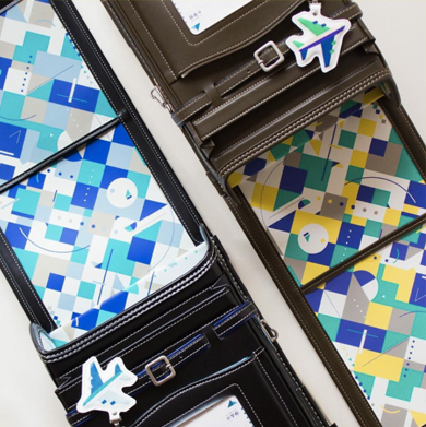 内装の柄をはじめ、時間割やネームカードの紙類、飛行機✈️のチャームのデザインをしました。
