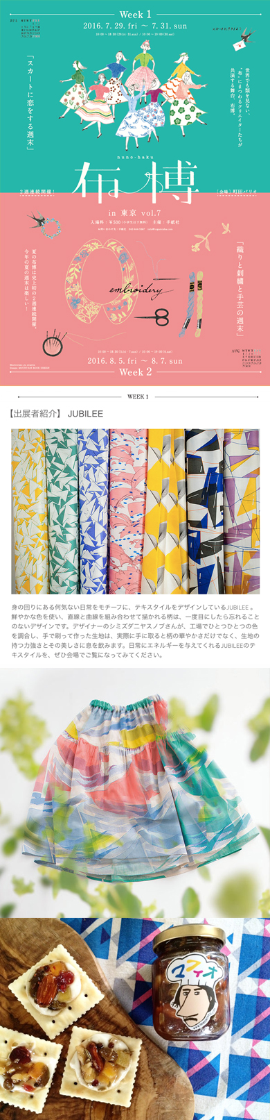 JUBILEEは1週目の「スカートに恋する週末」7/29(金)〜31(日)での出展です!